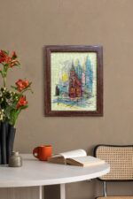 Capture the spirit of the city with this stunning cross-stitch artwork. Featuring a vibrant, stylized skyline and a striking red-brick building, this handmade piece adds a unique touch of urban charm and color to any space. Framed and ready to display, it’s a perfect gift for art lovers and city dwellers alike.